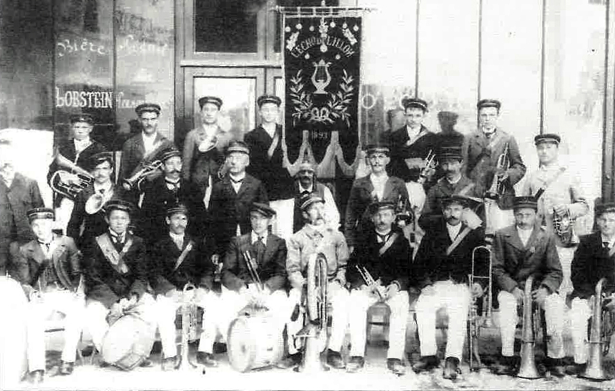 La première partie du mur gauche va être consacré à l’ÉCHO de l’ILLON, fanfare de la brasserie créée en 1893. Dès à présent les visiteurs peuvent admirer la bannière de la fanfare en velours pourpre brodé et orné de perles. Pour mieux le conserver, l’étendard a été installé dans une vitrine fabriquée par notre ami Louis MATON. La plaque relatant l’histoire de l’Écho de l’Illon sera également installée à côté de la vitrine.