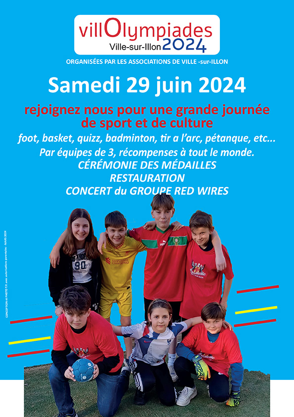 La journée VillOlympiades du samedi 29 juin se prépare, une date à caler dans les agendas. Des précisions sur les inscriptions et les animations seront diffusées prochainement.