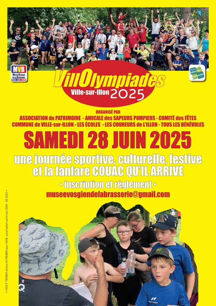 Une première réunion a eu lieu dernièrement pour poser les bases de l’organisation de la deuxième édition des VILLOLYMPIADES 2025. Toutes les associations étaient présentes : l’amicale des sapeurs pompiers, l’association du patrimoine, le comité des fêtes, les coureurs de l’Illon et bien sûr notre musée vosgien de la brasserie qui porte ce beau projet, soutenues par la commune en charge de la sécurité routière : rendez-vous le samedi 28 juin.